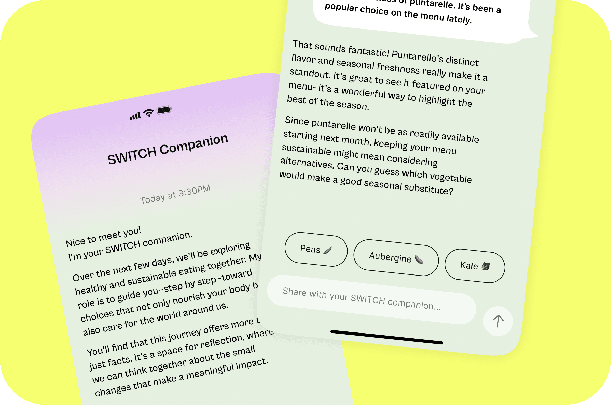 One of several digital explorations within SWITCH: investigating how AI can support sustainable dietary change.